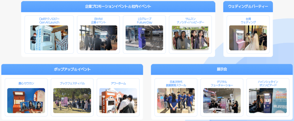 大学祭、展示会、商業施設、ブランドイベントなど、さまざまなシーンで導入が進んでいます。