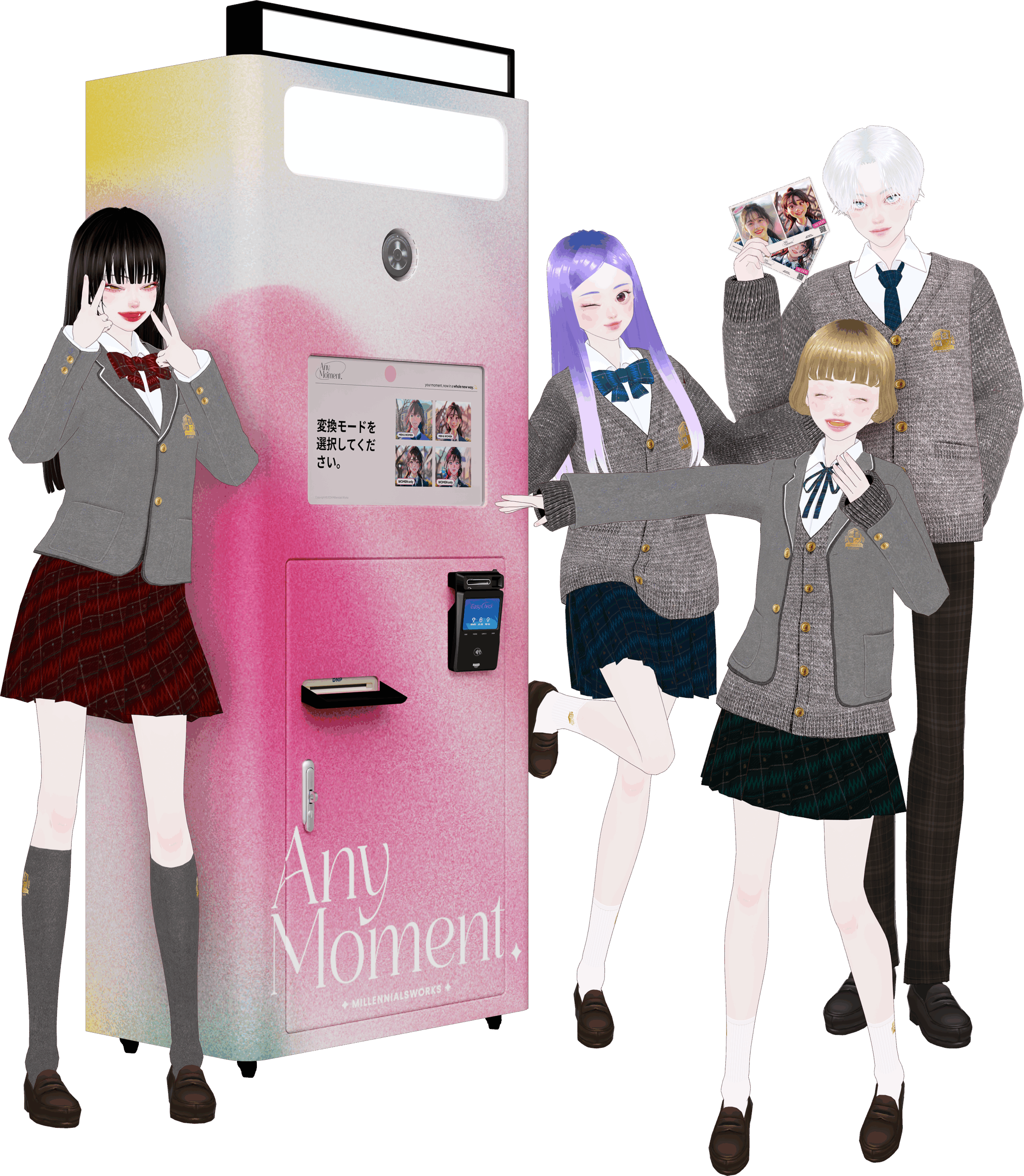 AnyMomentは、撮影からわずか1分でAIがあなたをキャラクター化する日本初の体験型フォトキオスクです。