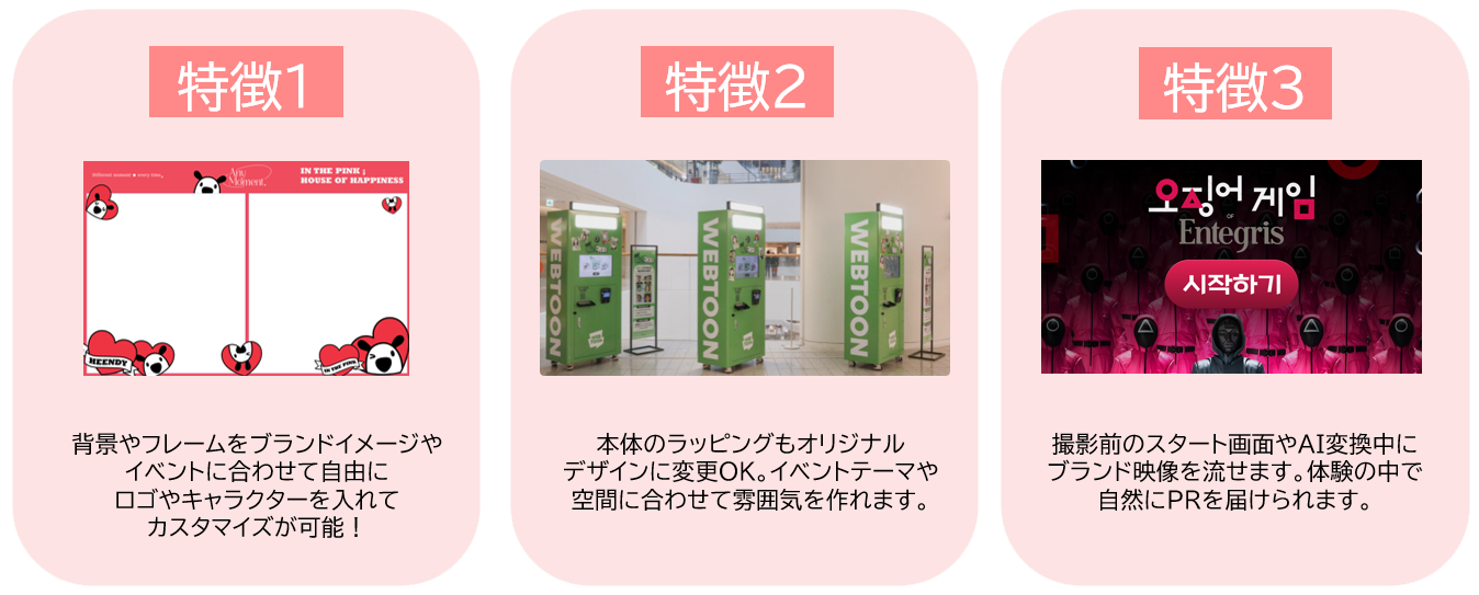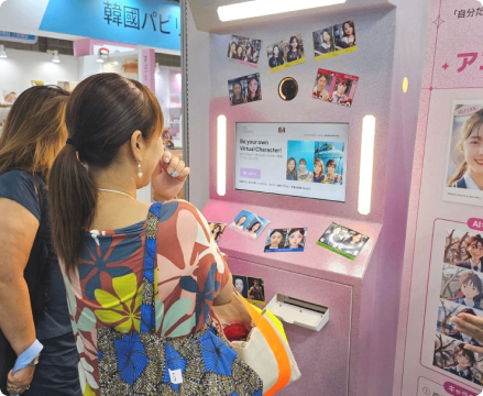 撮影したその場で「自分だけのAIキャラクター」を作れるフォトブースです。